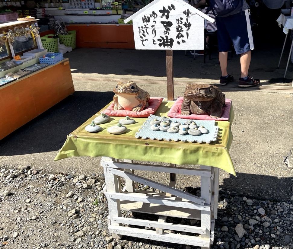 茨城県石岡市にある「ガマランド」は、筑波山ロープウェイ「つつじヶ丘駅」近くに位置する施設で現在は休業中の施設。ガマガエルの大きな像や、「大食堂」「おみやげ」「ガマの油販売所」といった看板が残る、どこか懐かしい雰囲気が魅力のスポットです。